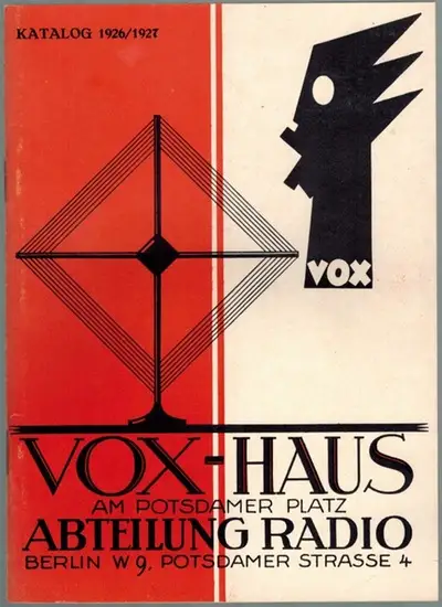 Vox Rundfunk-Empfangsgeräte und Zubehörteile. Katalog 1926/1927. [Nicht gekennzeichneter reprografischer Nachdruck der Ausgabe Berlin, Vox-Haus, November 1926] Ohne Ort [Berlin], ohne Verlag [L.-D. Schmidt], ohne Jahr [vermutlich 1990er-Jahre].