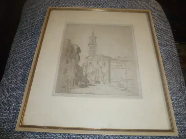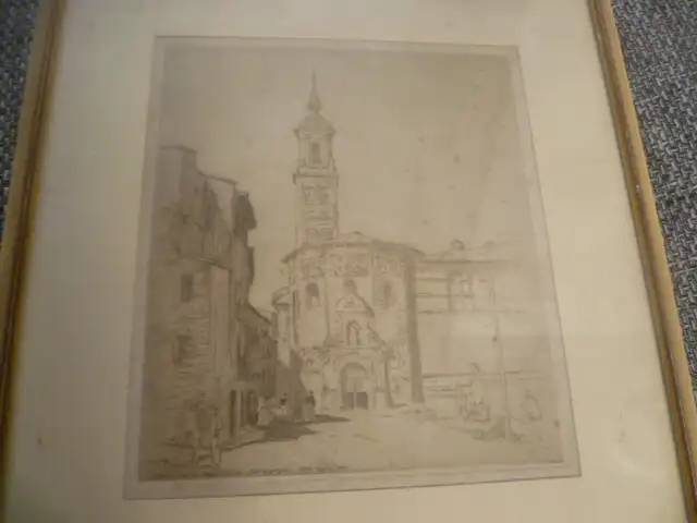 WILLI EGLER Karlsruhe Radierung "Eglesia de la Zarngoza“ handsigniert 1912 signiert datiert und Ortsbezeichnet