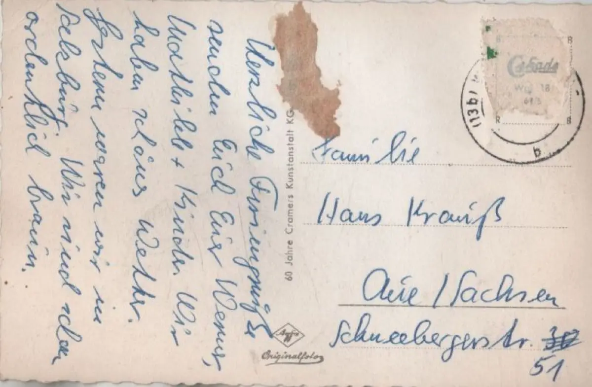 Bei dem angezeigten Bild handelt es sich um einen Original-Scan der angebotenen Ansichtskarte.