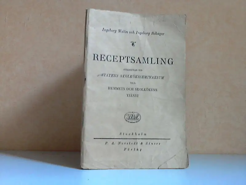 Eigentumsstempel, das Buch ist ein Dachbodenfund mit starken Gebrauchsspuren, gebräunt, fleckig, untere Seitenecken und der EInband sind teils stärker geknickt, ... Var avsikt med utarbetandet och samlandet av föreliggande recept har fran början varit att söka underlätta och göra mer fruktbärande arbetet vid de matlagningskurser, som Statens skolköksseminarium varje ar anordnar för att bereda areta lärarinneelever tillfälle tili undervisningsövningar. Dessa kurser besökas av flickor fran folkskolans sjunde och ättonde klasser. ... (aus dem Buch) Beschreibung vom Antiquariat Ardelt 3g2a Antiquariat Ardelt