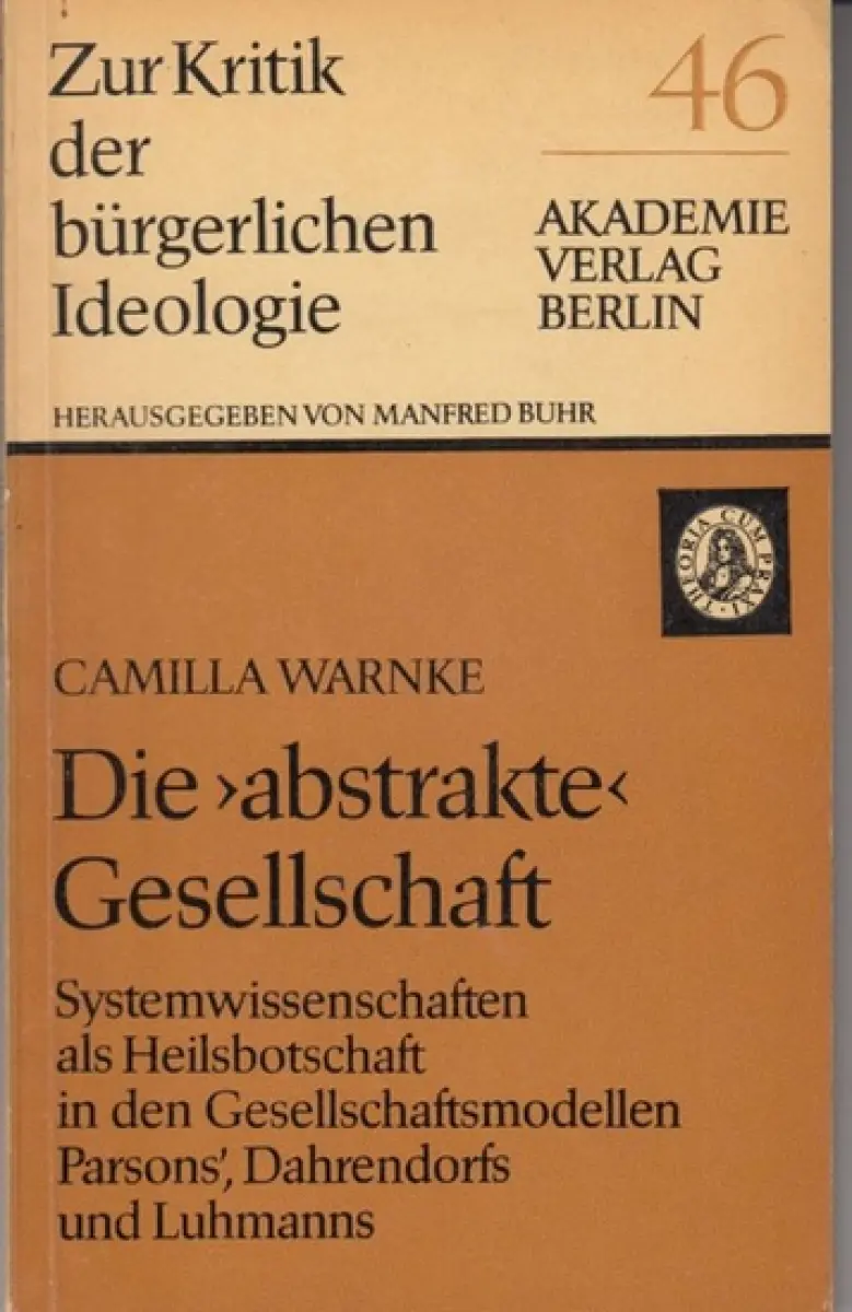 Warnke, Camilla: Die 'abstrakte' Gesellschaft. Systemwissenschaften als Heilsbotschaft in den Gesellschaftsmodellen Parsons', Dahrendorfs und Luhmanns ( = Zur Kritik der bürgerlichen Ideologie, 46 ). - Widmungsexemplar!.