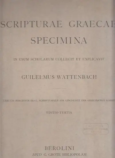 Wattenbach, Guilelmus (Wilhelm): Scripturae graecae specimina in usum scholarum collegit et explicavit. Libri cui inscriptum erat: Schrifttafeln zur Geschichte der griechischen Schrift.