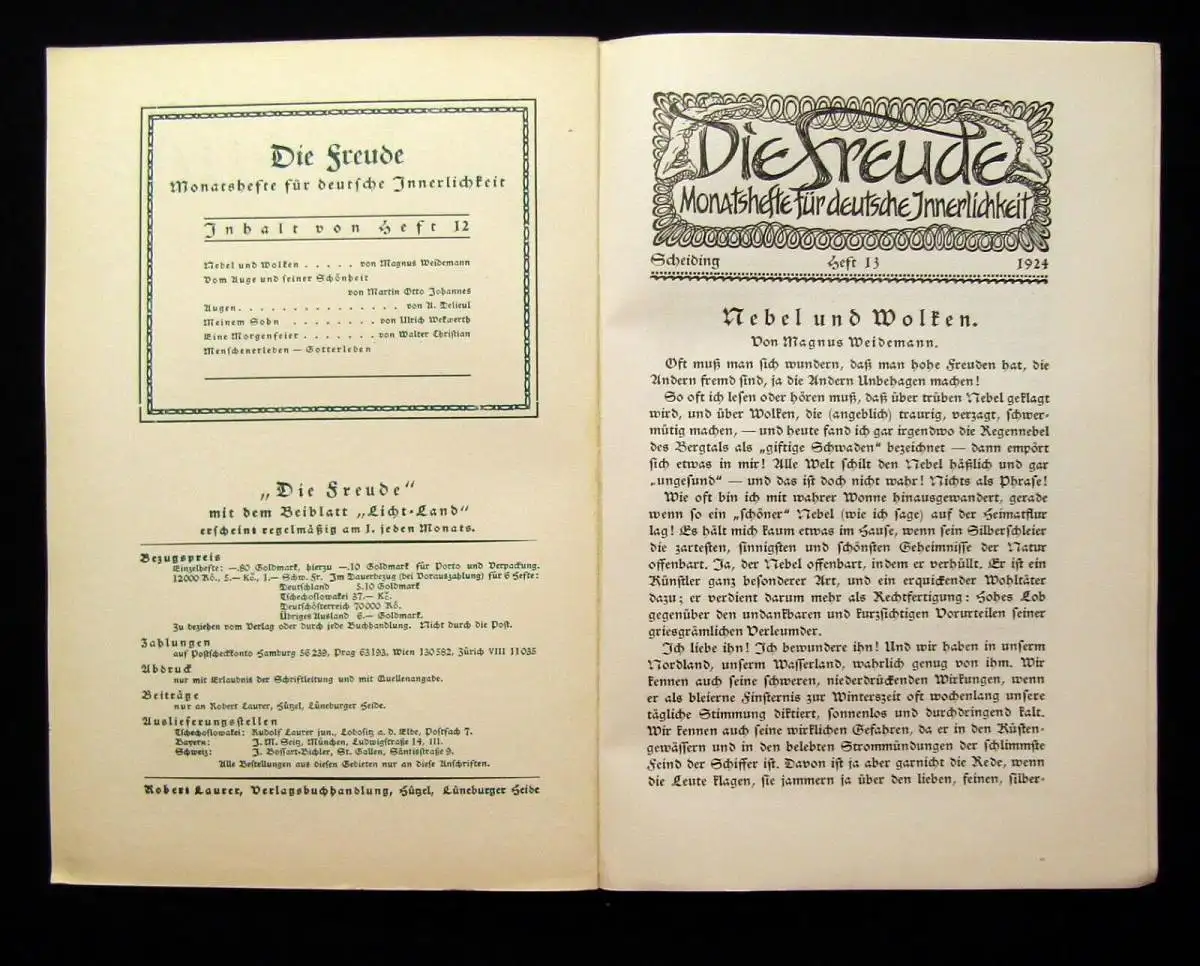 Inhalte: Nebel und Wolken, Vom Auge und seiner Schönheit, Augen, Meinem Sohn, Eine Morgenfeier, Menschenerleben- Gotterleben
