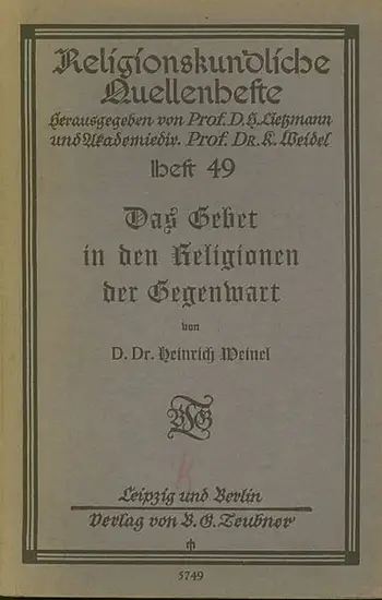 Weinel, Heinrich: Das Gebet in den Religionen der Gegenwart. (= Religionskundliche Quellenhefte 49 ).