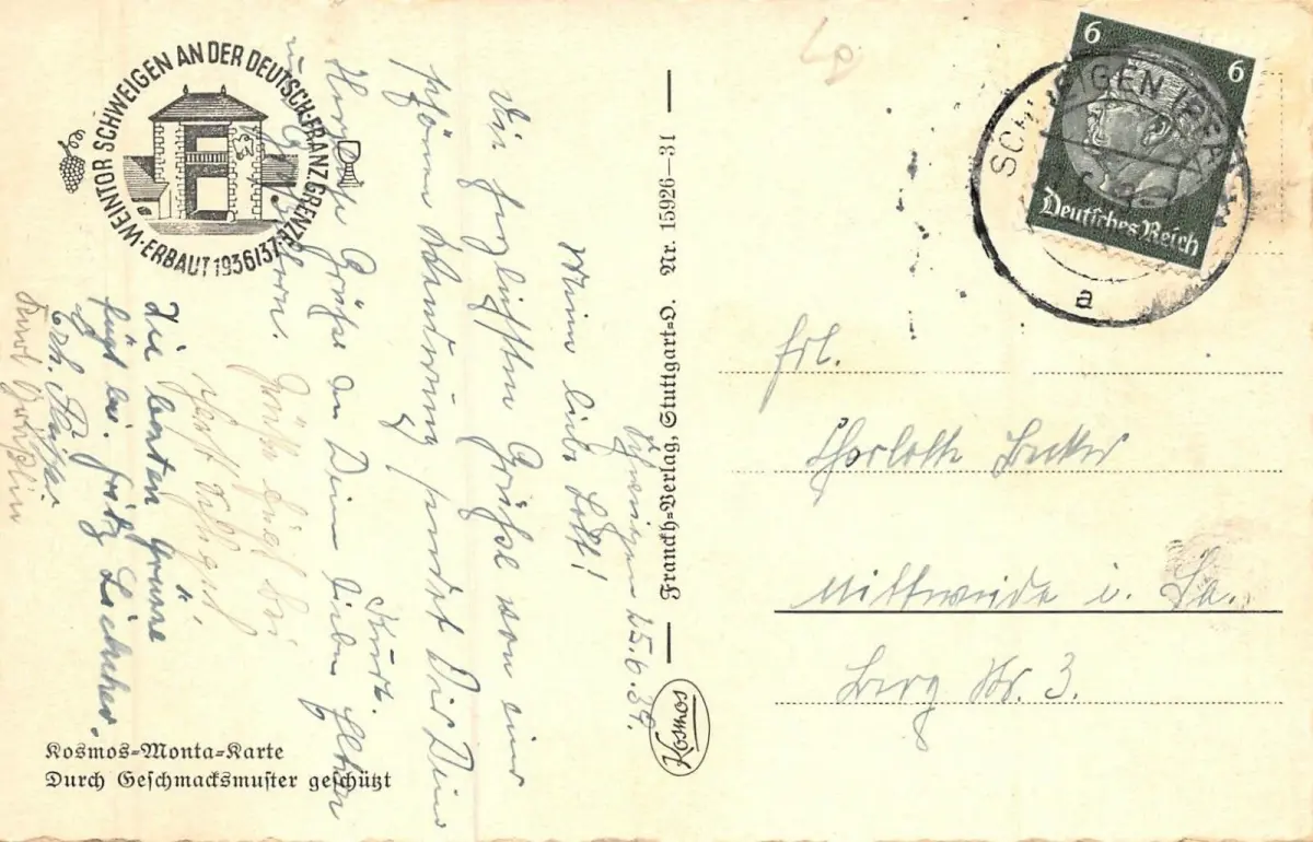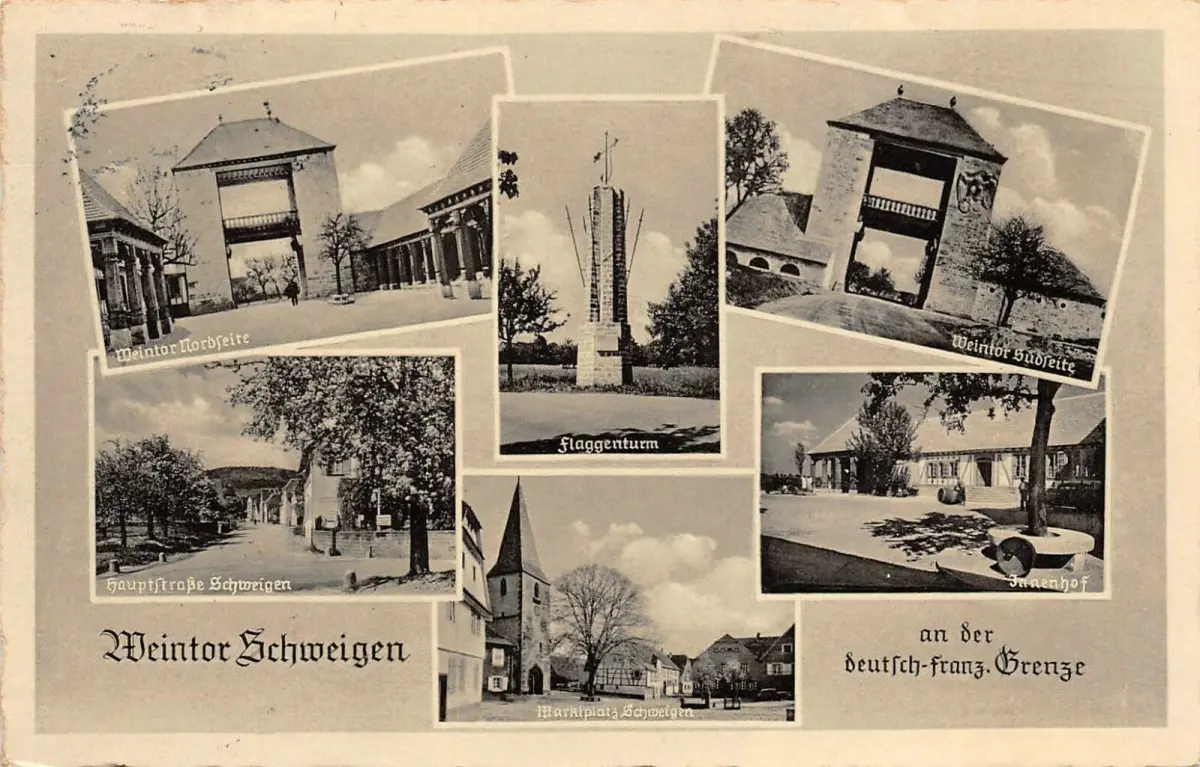 Weintor Schweigen Flaggenturm Marktplatz Innenhof Postkarte AK