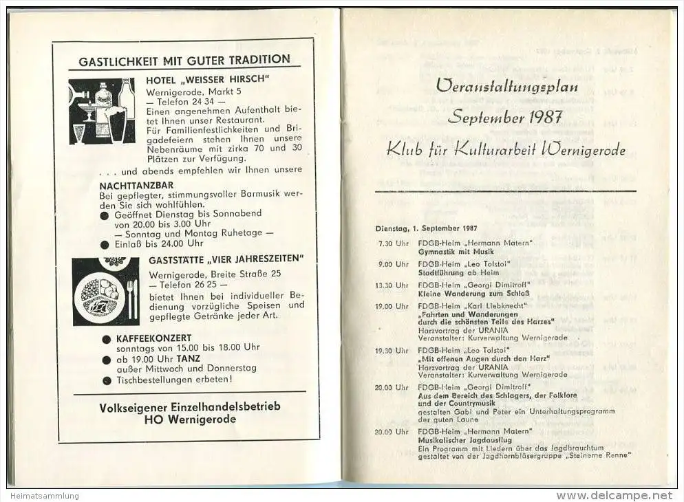 Wernigerode 1987 - 50 Seiten - Chronik - Veranstaltungsplan Sept. 1987 - Fahrplan der Harzquerbahn