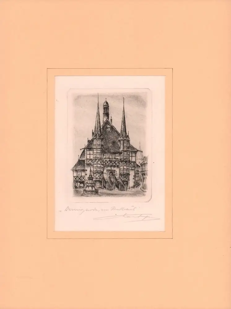 Wernigerode, am Rathaus. Kaltnadelradierung