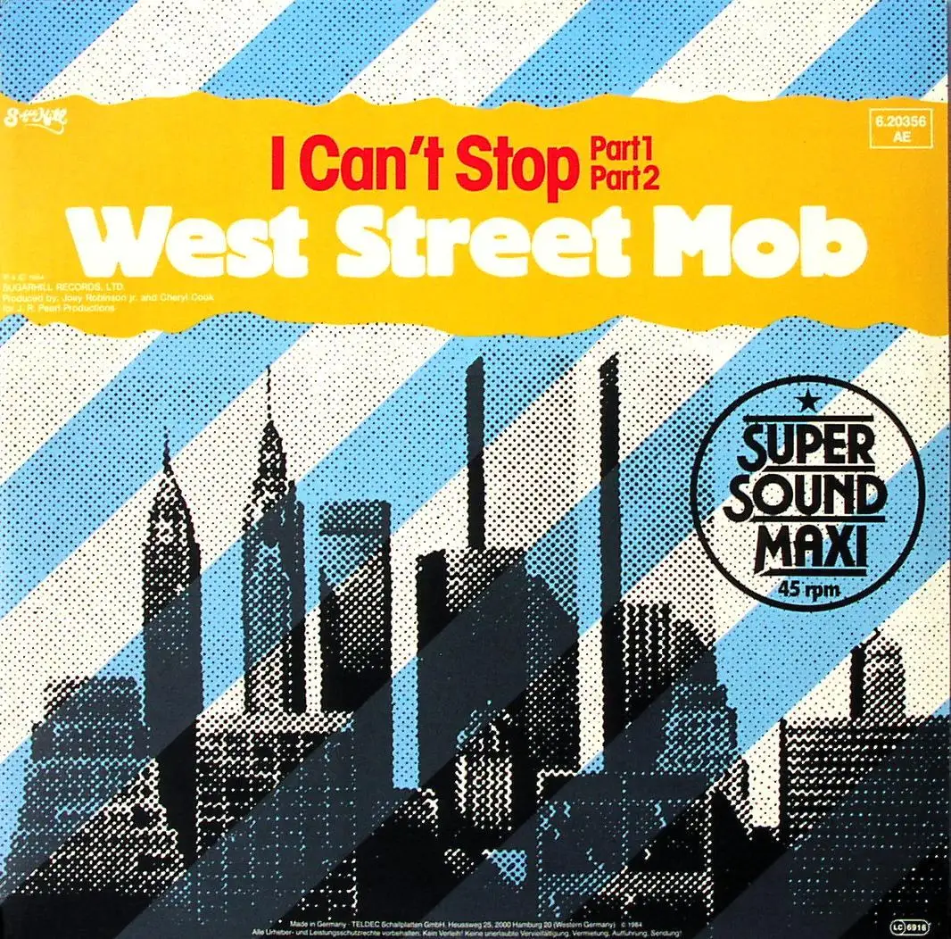12" Maxi West Street Mob - I Can't Stop, état plaque M- Hülle VG+; Fabriqué en Allemagne 1984 Sugarhill 6.20356, Tracks [Part 1] 5:05, [Partement 2] 5:05