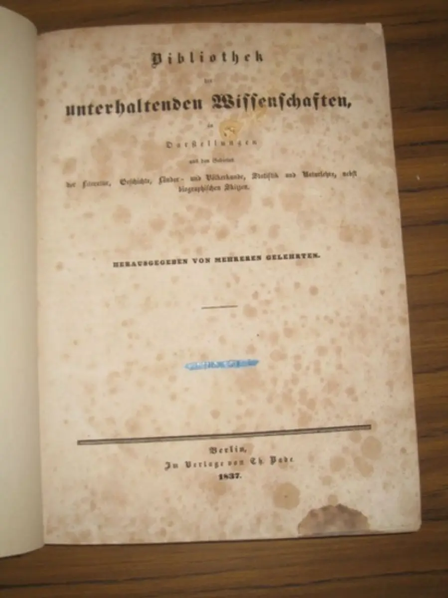 Freie Beschreibung: Gr.-8°. Neuerer Halbleinenband mit alten marmorierten Bezugspapieren (diese stärker berieben). (8) Seiten Titelei mit Inhaltsverzeichnis, Frontispizporträt, 192 / 206 (+2) Seiten und 2 ganzseitige, farbige Karten ( Pyrenaeische Halbinsel (Spanien und Portugal) / Unter-Aegypten). Im Innenbereich etwas braunfleckig, im ersten Teil Seiten 187/8 im unteren Rand mit 8cm Einriss. Im unteren Buchrand teils mit Verfärbung (teils bis zu 5 cm). Lagenweise stark braunfleckig. Noch gutes Exemplar