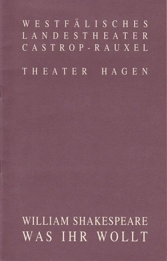 Westfälisches Landestheater Castrop-Rauxel, Theater Hagen, Herbert Hauck, Harald F. Petermichl: Programmheft William Shakespeare WAS IHR WOLLT Premiere 6. November 1993 Stadthalle Castrop-Rauxel.