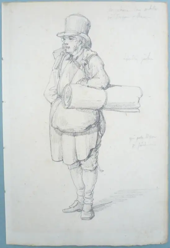 Wetterling, Alexander Clemens (1796 Uppland - 1858 Stockholm),, Elegant gekleideter Herr als Ganzfigur mit umgehängter Rolle. Bleistift