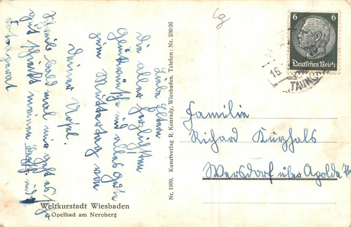 Wiesbaden Weltkurstadt Opelbad mit Neroberg AK 1941