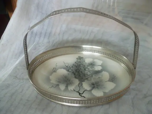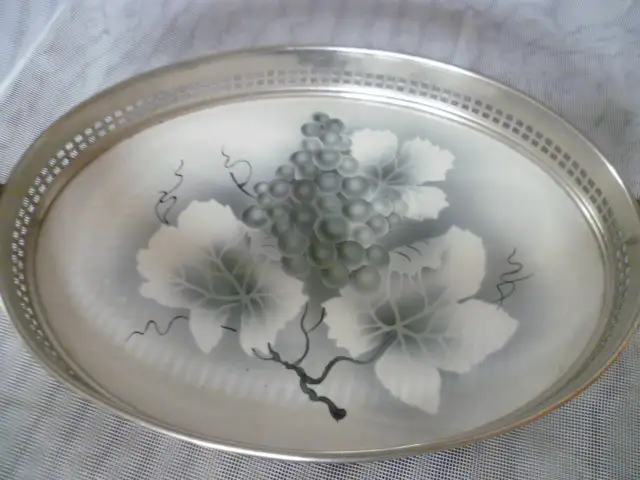 Wohl von WMF anbiete Henkelschale mit Metallmontierung Art Deko um 1920 Keramikplatte mit Weinrebendekor