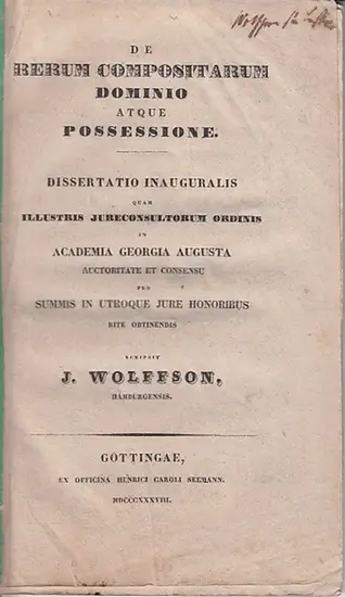 Wolffson, I[saao], Hamburgensis: De rerum compositarum dominio atque possessione. Dissertatio inauguralis [...] in Academia Georgia Augusta [...] pro summis in utroque jure honoribus rite obtinendibus scripsit.