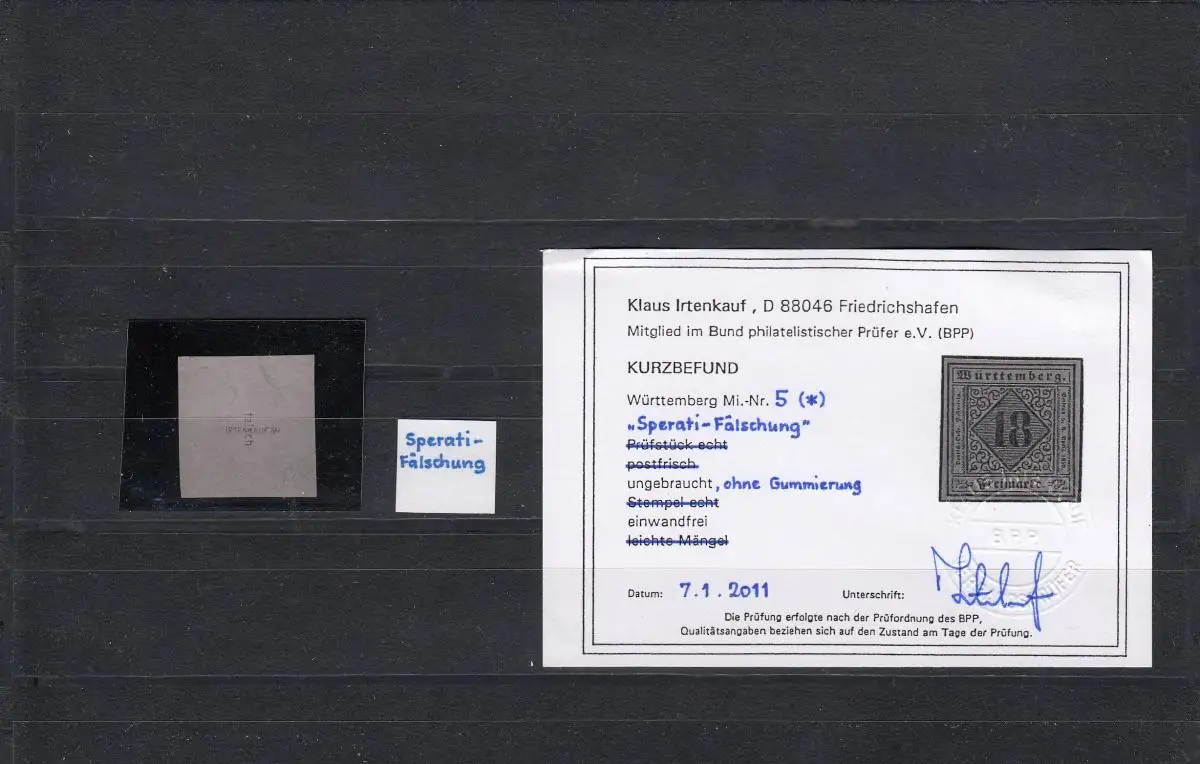 Wurtemberg: Min. 5, sans caoutchouc, faux sperati, BPP résultat
