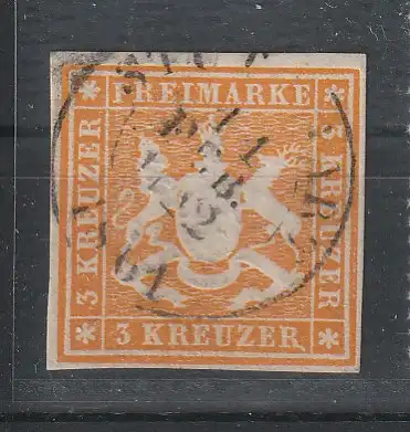 Württemberg: Nr. 12a mit PF II, gestempelt, tiefstgeprüft Heinrich BPP