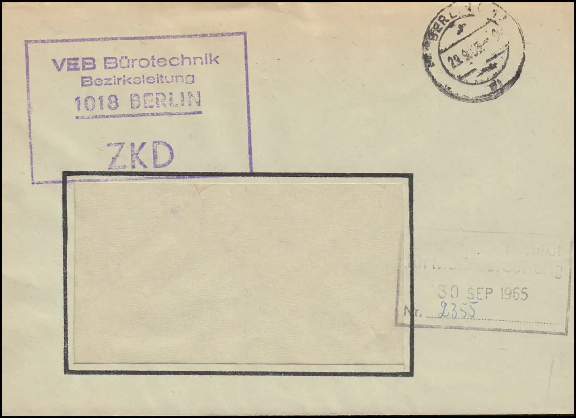 Lettre de la ZKD VEB Bürotechnik BERLIN 17 - 29.9.65 à l'Institut d'études de marché Berlin