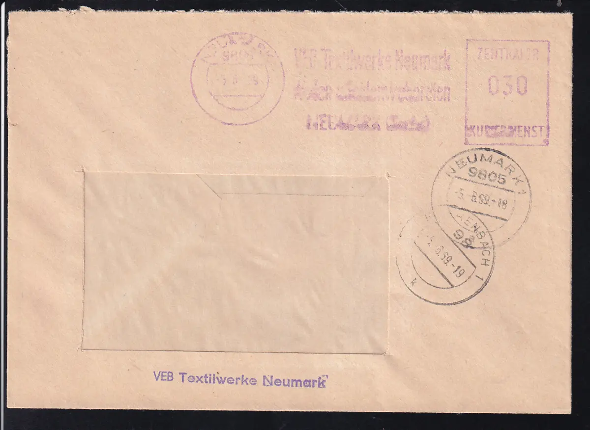 ZKD-Freistempel des VEB Textilwerke Neumark auf Fensterbrief