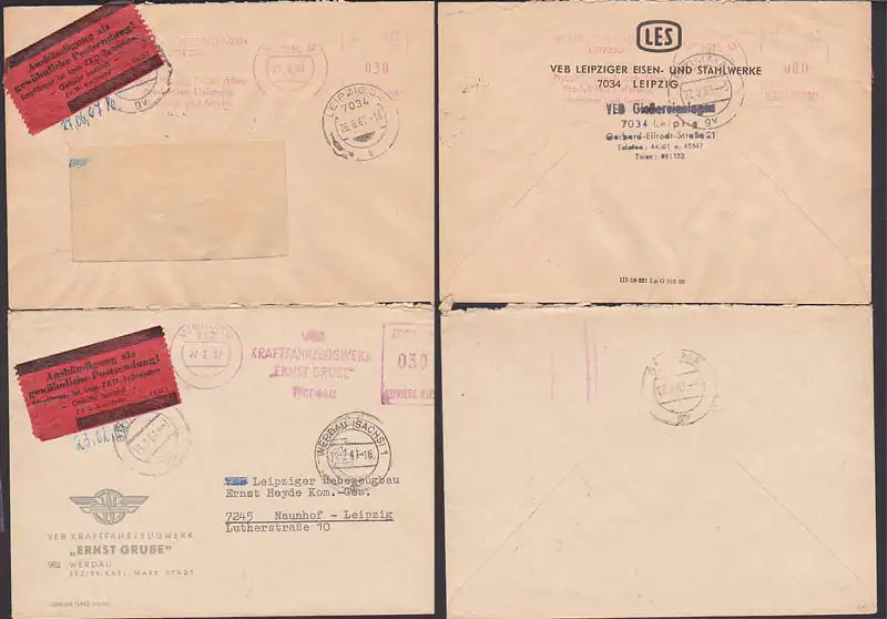 ZKD-Kontrolle ZKD 7, roter Pergaminzettel für Aushändigung als gewöhnliche Sendung aus Werdau, Leipzig