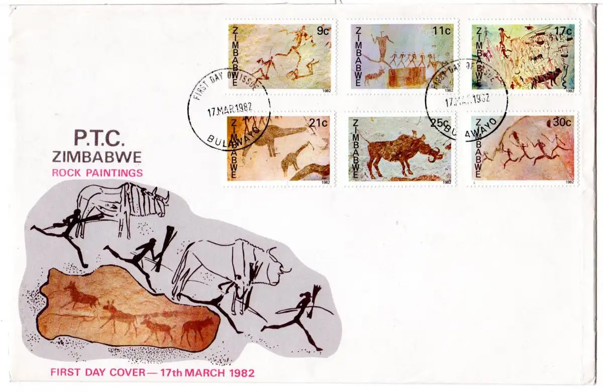 Zambia 1982, 6 Werte Felsenmalerei kpl. auf FDC