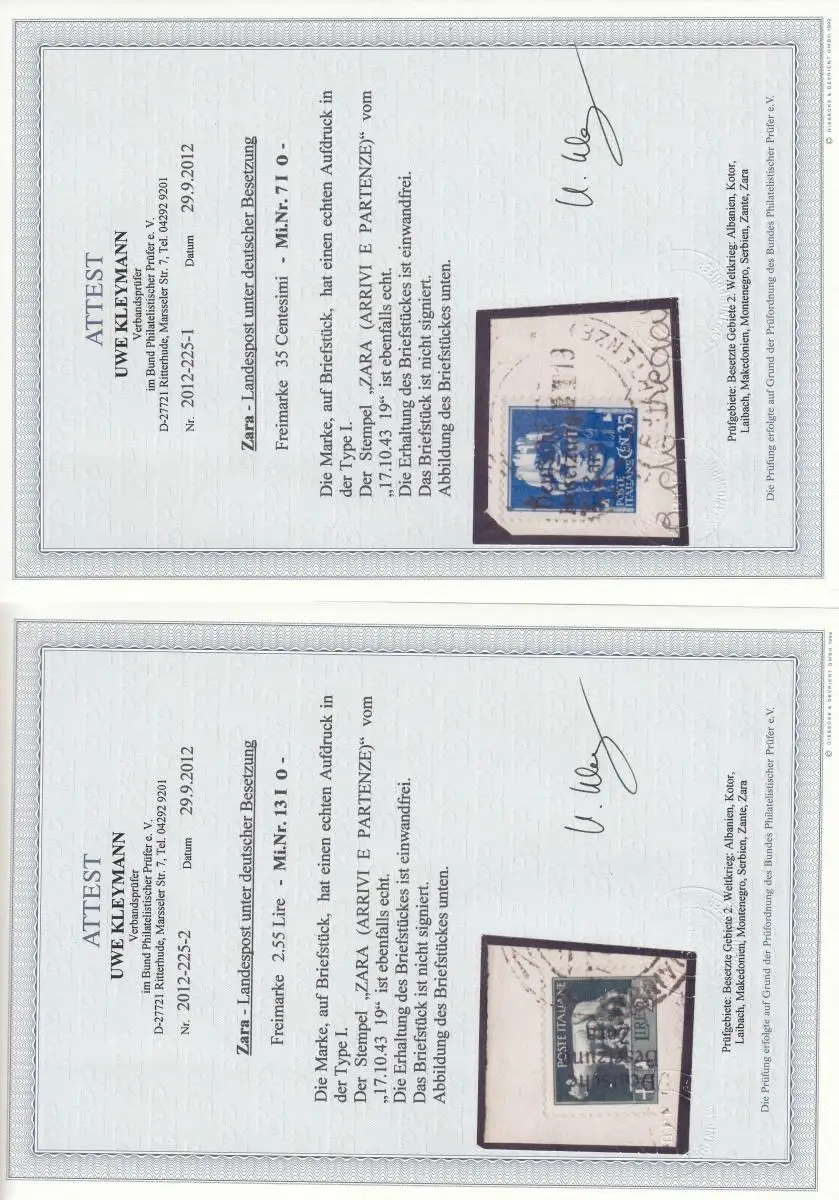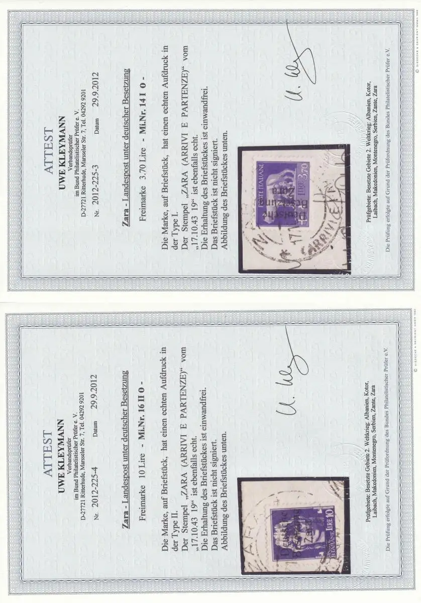 Zara: Min. 1-16, cacheté sur la lettre, 4x BPP Attest