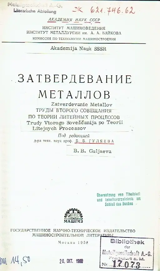 Zatverdevanie Metallov Trudy vtorogo Cobeschtschanuja po Teorii Liteynych Prozessov.