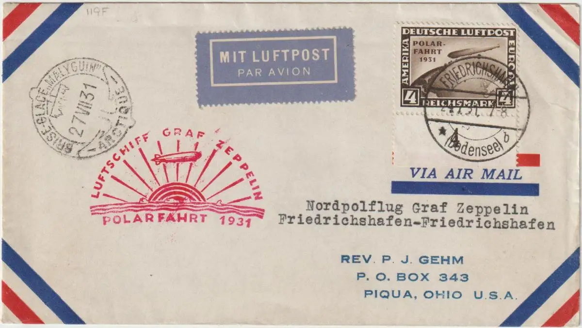 Zeppelin: Polarfahrt 1931; frankiert mit Polarfahrt 4 RM