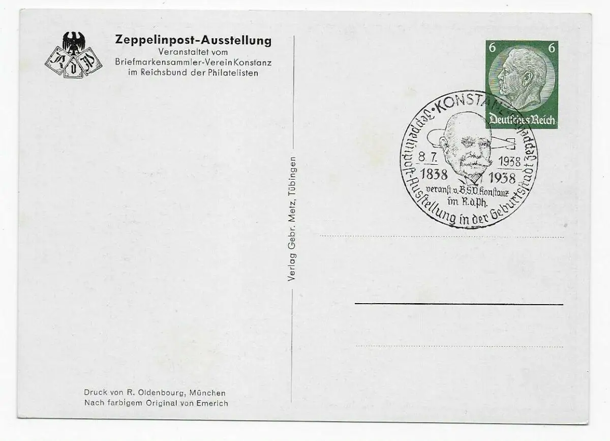 Zeppelinpost Exposition, Constance, avec cachet spécial 1938