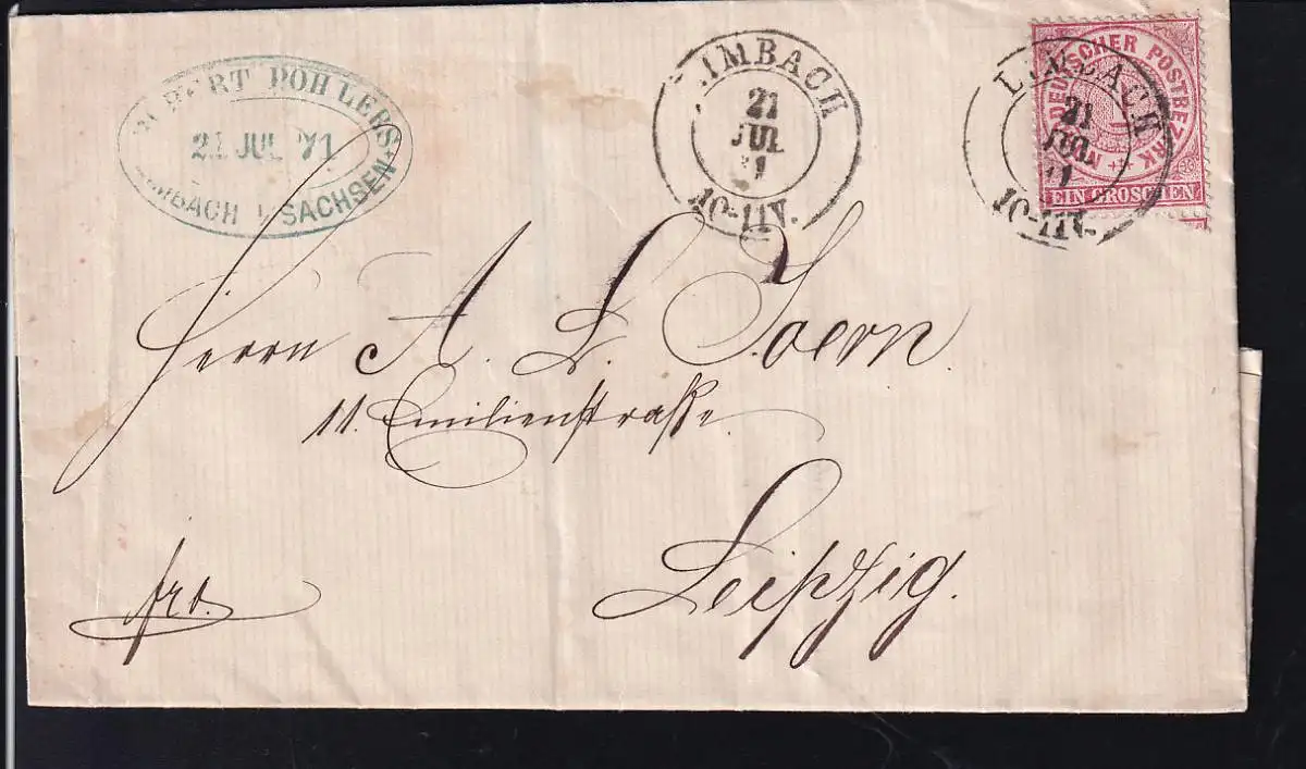 Ziffer 1 Gr. auf Brief (unvollständig) mit K2 LIMBACH 21 JUL 71 nach Leipzig