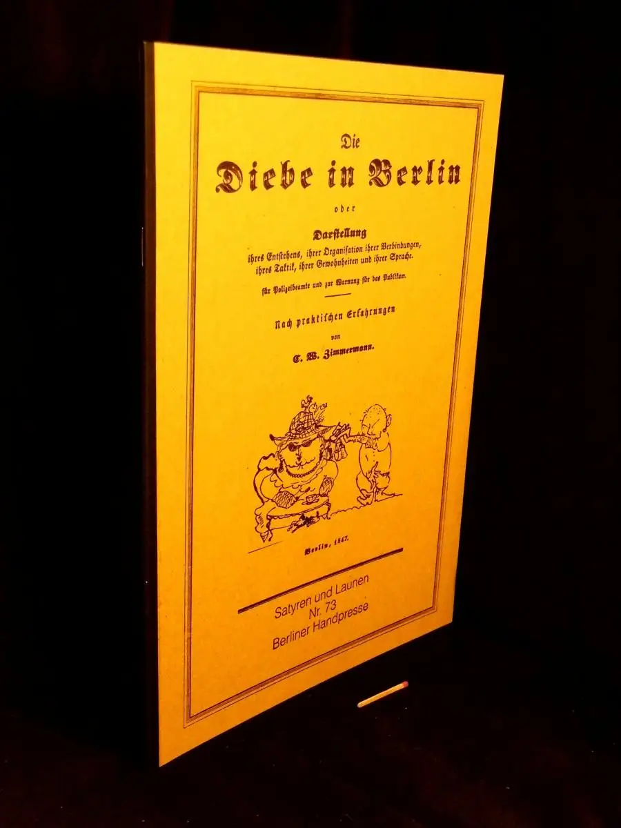 Zimmermann, C.W: Die Diebe in Berlin oder Darstellung ihres Entstehens, ihrer Organisation ihrer Verbindungen, ihres Taktik, ihrer Gewohnheiten und ihrer Sprache - Für Polizeibeamte und für das Publikum. Nach praktischen Erfahrungen. Berlin 1847 - aus der