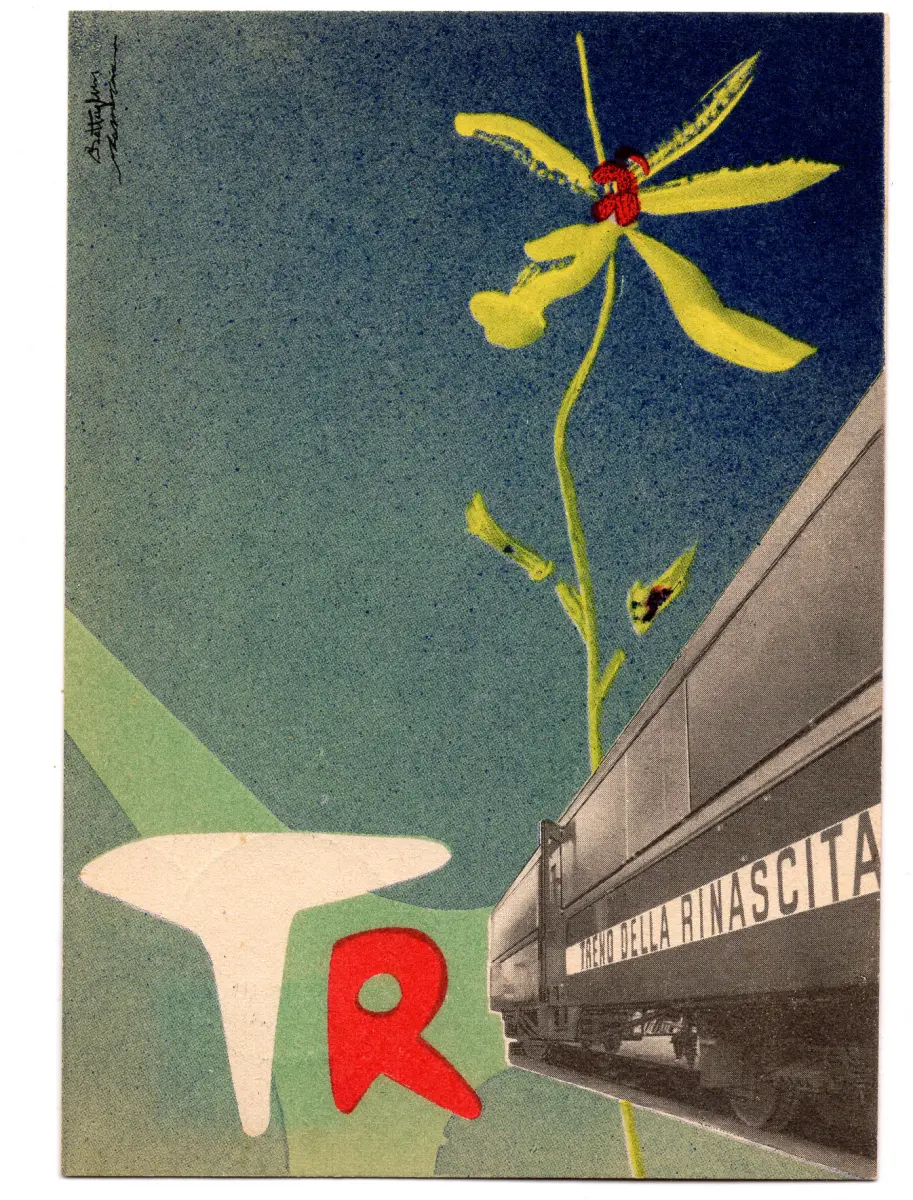 Zug der Wiedergeburt - Die offizielle Postkarte von Dardo Battaglini - Zug der Wiedergeburt - Die offizielle Postkarte von Dardo Battaglini in Zusammenarbeit mit Zamorani mit spezieller Gedenkmarke annulliert - Ungewöhnliche Nr. 557/20