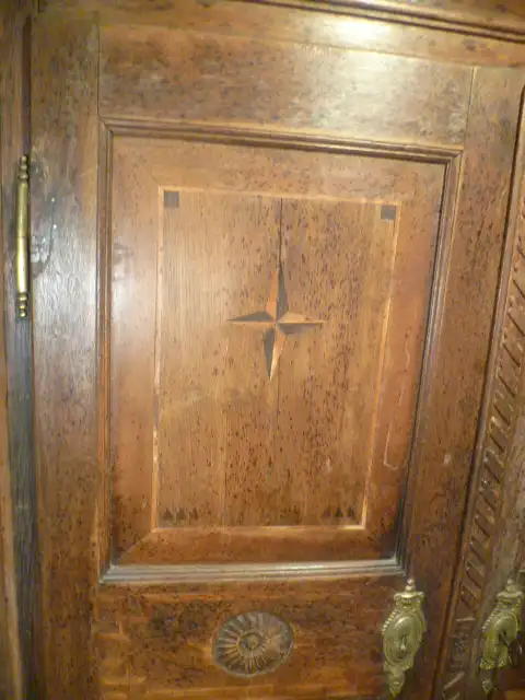 Zwei türig, mit Sterneinlagen und feine Schnitzereien in den Füllungen