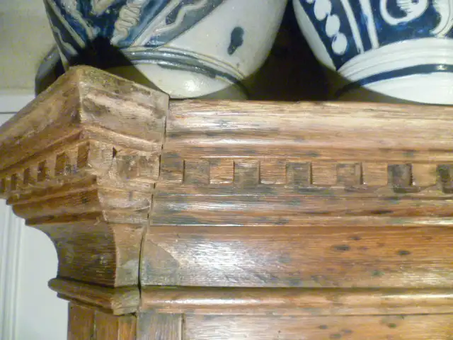 Abgeschrägte Front mit Felder Einteilung Schnitzereien.