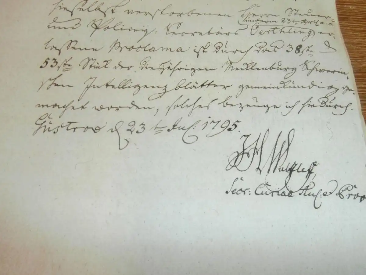 alte Akte - 1795 , von Bülow , Güstrow i. Mecklenburg , Adel , Rostock , Oerthling !!!