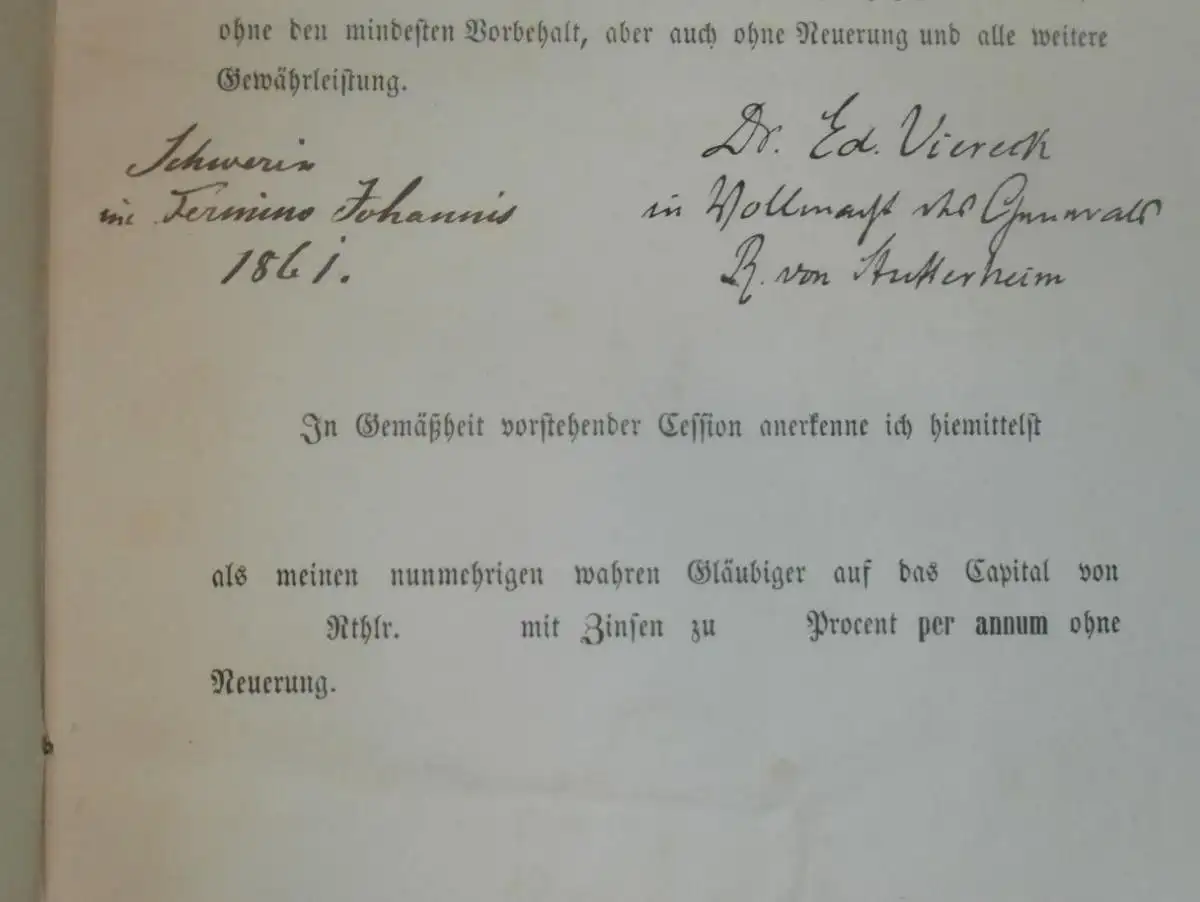 alte Akte - 1861, Zerline Pincus in Schwerin , Kladow und Rönkenhof bei Crivitz i. Mecklenburg , von Lauingen !!AZB-1/WR5