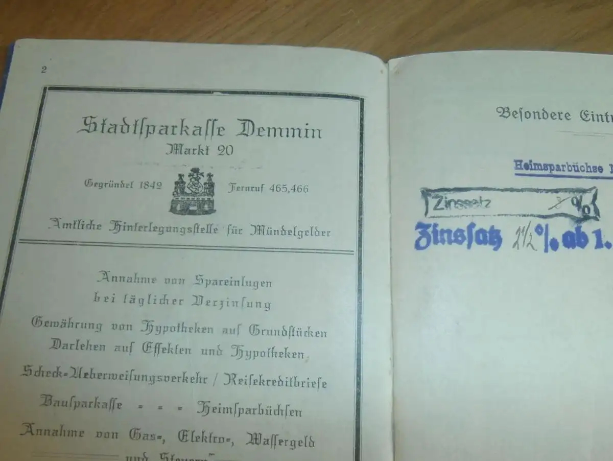 altes Sparbuch Demmin ,1932 - 1944 , Bruno Michael in Demmin i. Mecklenburg , Sparkasse , Bank !!
