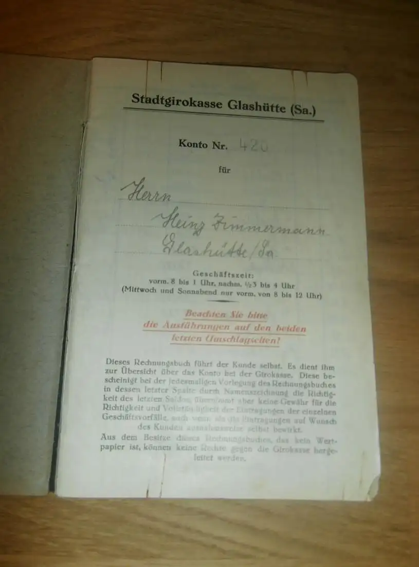 altes Sparbuch Glashütte / Sa. / Dippoldiswalde ,1942-1946 , Heinz Zimmermann , Sparkasse , Bank !!!