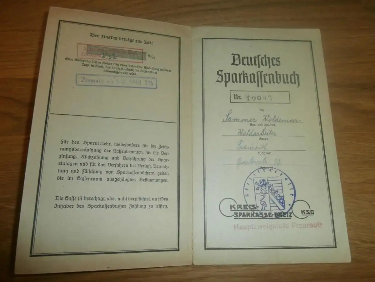 altes Sparbuch Greiz / Fraureuth , Gartenstraße , Waldemar Sommer , Sparkasse , Bank !!!