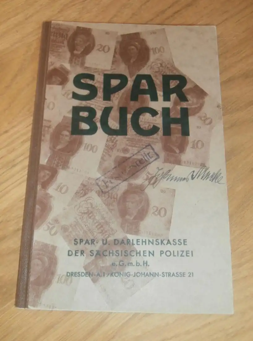 altes Sparbuch der Sächsischen Polizei Dresden , 1937 - 1944 , Johannes Mucke in Dresden , Polizei , Sparkasse , Bank !!