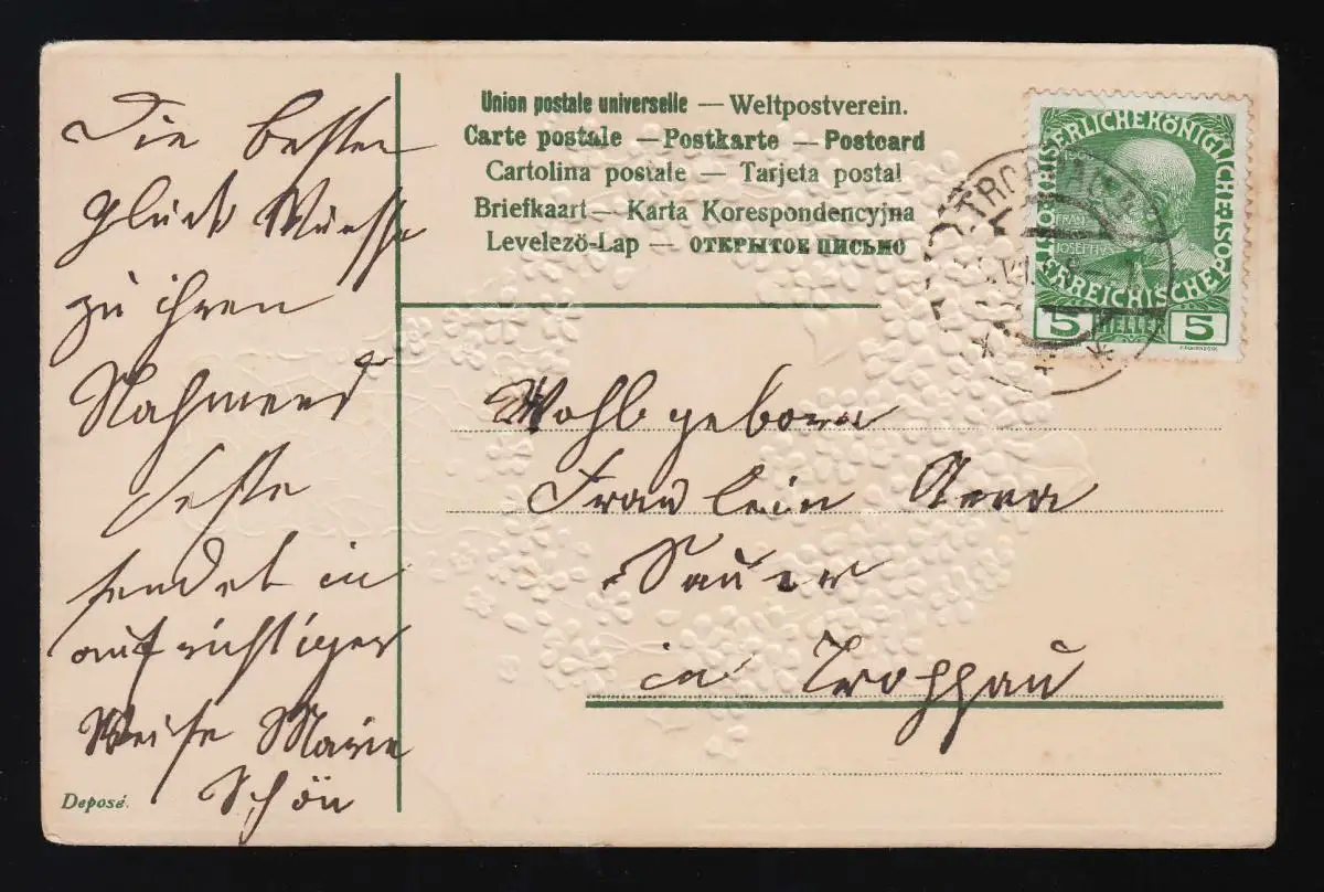 fleurs blanches rouges vase stylisé nom de jour de la Silésie supérieure Troppau / Opava 1908