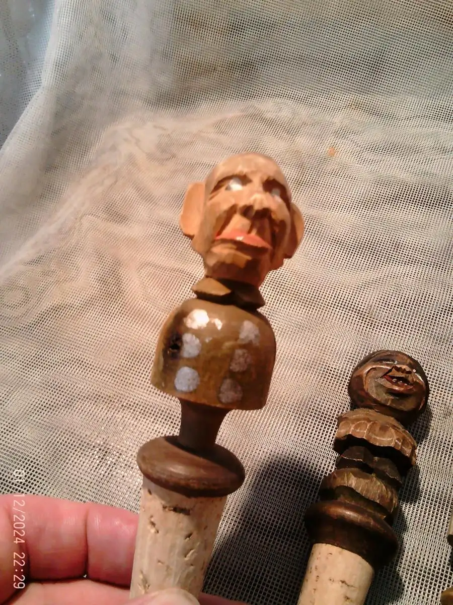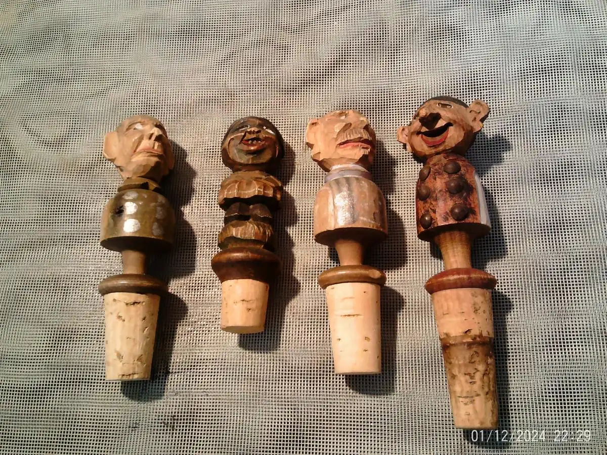 Konvolut von 4 Korkenmännchen Schwarzwald oder Erzgebirge von Hand geschnitzt um 1920