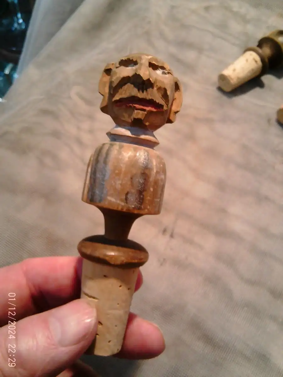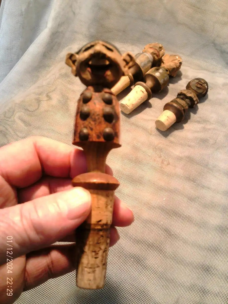 museales Konvolut von 4 Korkenmännchen Italien von Hand geschnitzt ab 1920 teilweise signiert und Ortsbezeichnet 1924..