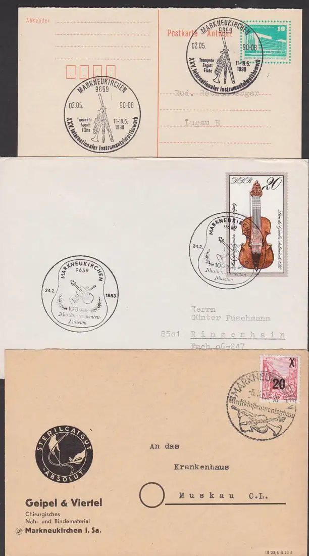 musique Markneukirchen Musik music Geige Violine Trompete Fagott Flöte Abb. auf SSt. 5 Belege