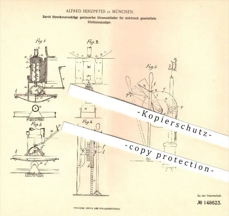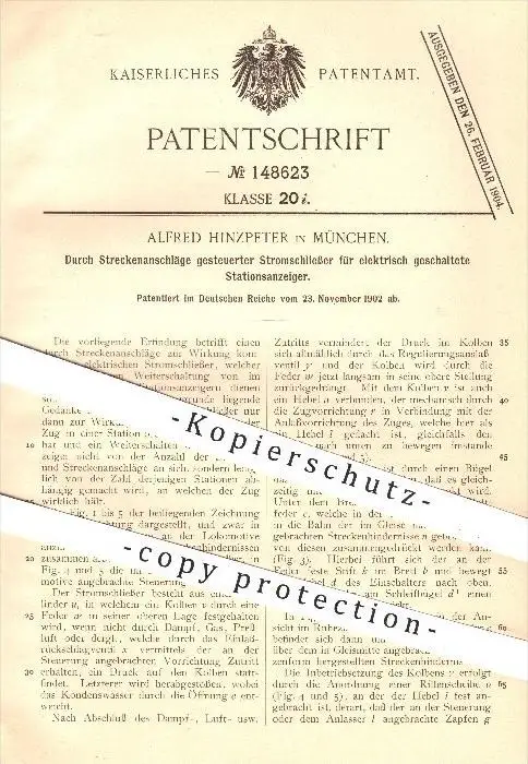 original Patent - Alfred Hinzpeter in München , 1902 , gesteuerter Stromschließer , Strom , Motor , Motoren !!!