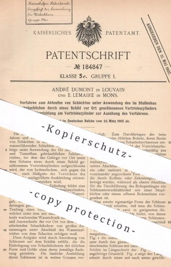 original Patent - André Dumont , Louvain | E. Lemaire , Mons , 1905 , Schacht abteufen | Bergwerk , Bergbau , Stollenbau