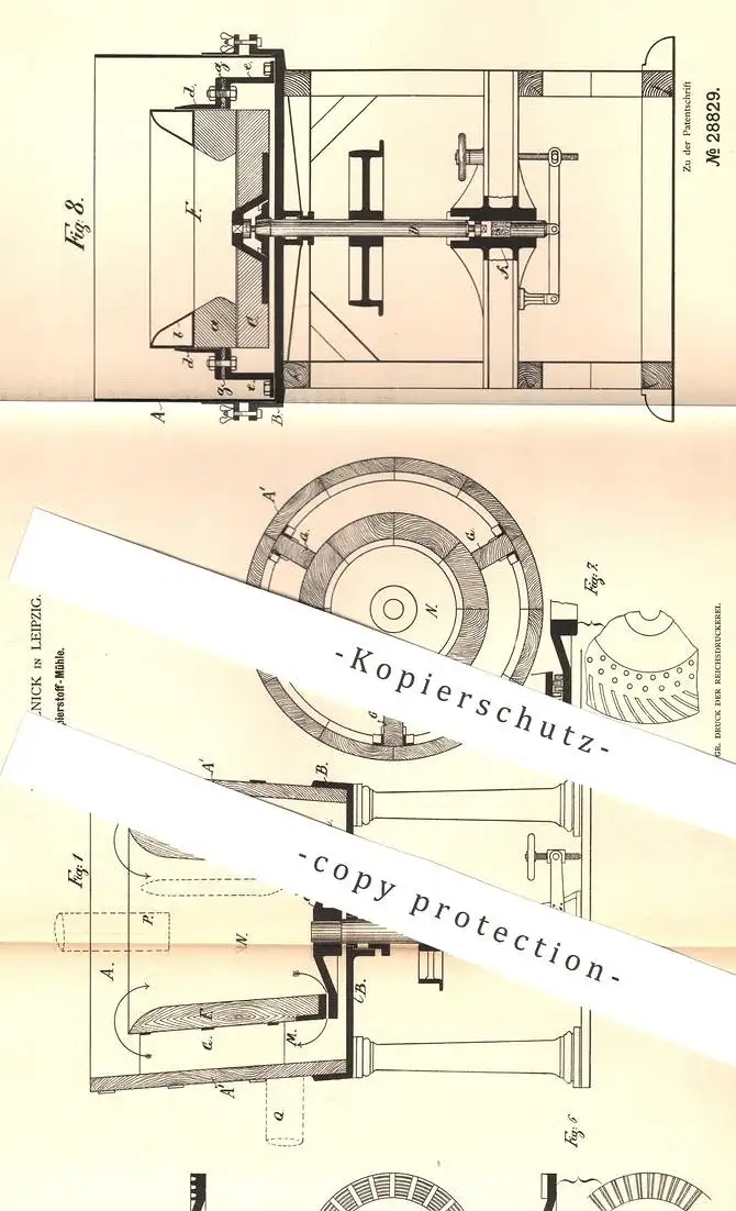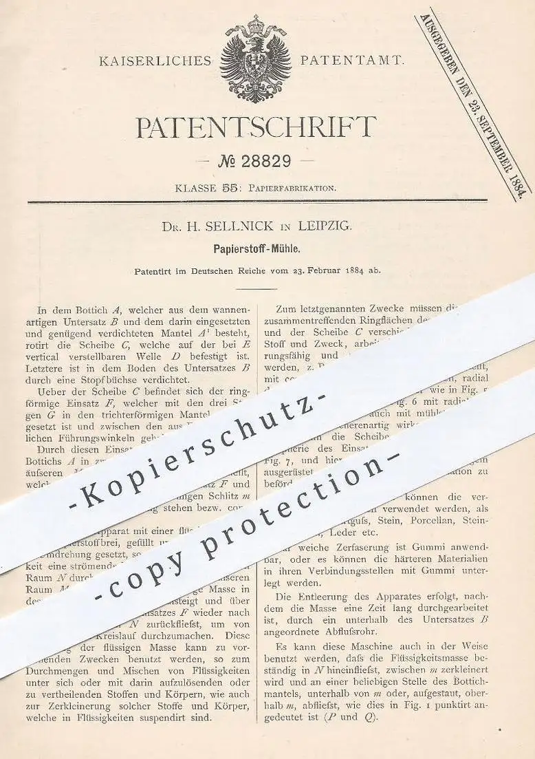 original Patent - Dr. H. Sellnick , Leipzig , 1884 , Papierstoff - Mühle | Papier , Papierfabrik , Mühlen , Stoff !!