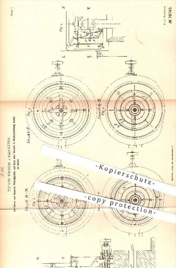 original Patent - E. Theisen , Radolfzell 1892 , Apparat, um Flüssigkeiten , Gase o. Dämpfe in Wechselwirkung zu bringen