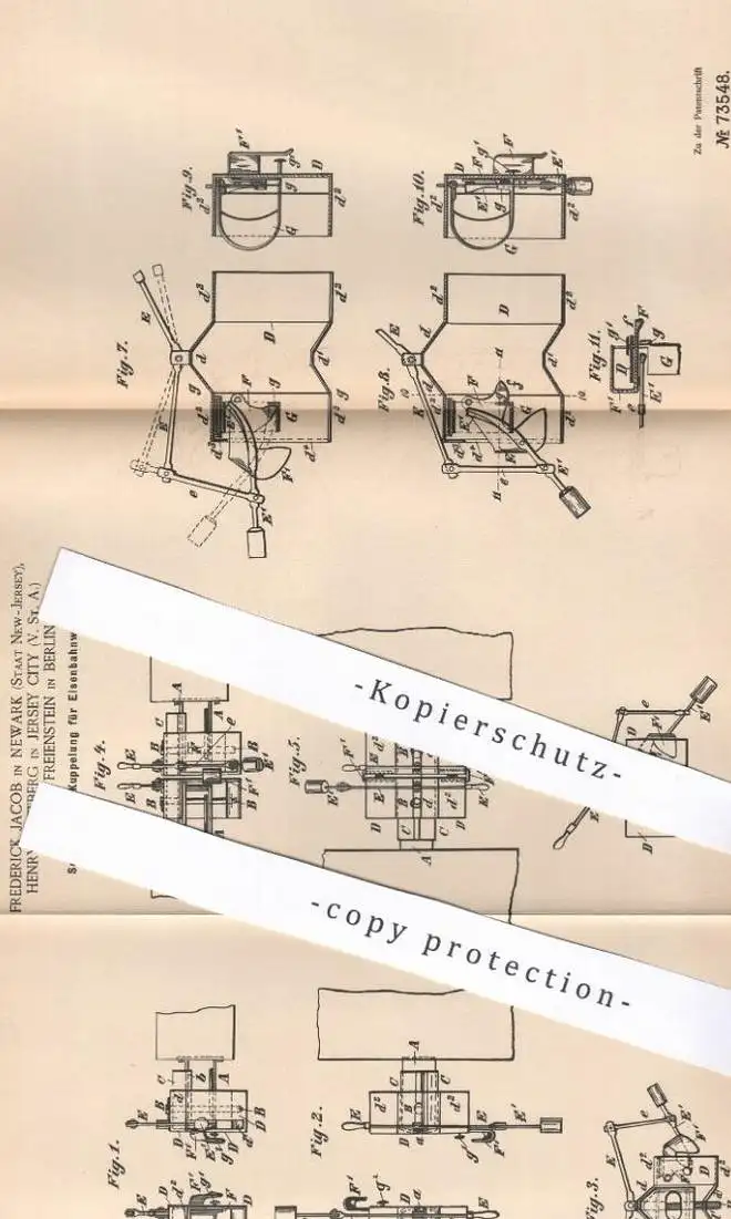 original Patent - Fred. Jacob , New York | Henry Pattberg , New Jersey | Fritz Freienstein , Berlin | Eisenbahn Kupplung