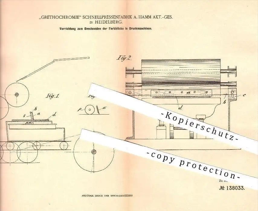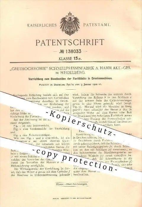 original Patent - Grethochromie Schnellpressenfabrik A. Hamm AG , Heidelberg , 1902, Farbblock in Druckmaschinen , Druck