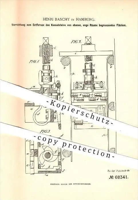 original Patent - Henri Baschy in Hamburg , 1892 , Entfernen von Kesselstein , Dampfkessel , Dampfmaschine , Kessel !!!